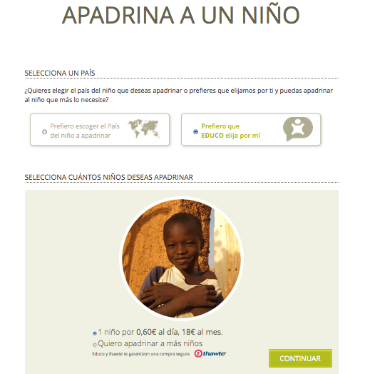 Lo llamativo es que adaptándose a los nuevos tiempos y tratando de aprovechar las calamidades actuales, esta misma ONG, Intervida, ha creado junto con otra, una nueva ONG, Educo, ampliamente publicitada en medios de comunicación, en la que ahora pide apadrinar niños supuestamente que no pueden comer en los colegios, si bien, en su página web ofrecen apadrinar niños aquí o en un país empobrecido, e incluso te ofrecen la posibilidad de que les dejes a ellos elegir el país de destino de tu apadrinamiento. Está claro que también el apadrinamiento trata de aprovecharse de la crisis, explotando las situaciones de pobreza extrema que viven muchos menores en España. Sin embargo, en la página web de esta nueva ONG no se puede obtener información sobre su organización, dirección, financiación, acreditación, programas de intervención, empleo de los recursos obtenidos, etc, únicamente piden donativos, apadrinamientos, ingresos y dinero. Todo lo que una ONG no debe hacer.