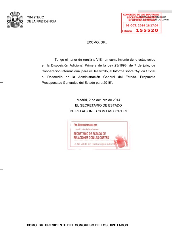 Coincidiendo con la designación de España como miembro no permanente del Consejo de Seguridad de Naciones Unidas, se están presentando los presupuestos de la Ayuda Oficial al Desarrollo de España para el año 2015 dentro de los Presupuestos Generales del Estado mediante informe a la Comisión de Cooperación Internacional para el Desarrollo del Congreso de los Diputados. El documento que se ha remitido a los diputados sustituye a los anteriores PACI Previsiones, siendo tan escueto como insuficiente, al contar con unas escasas 7 páginas más 2 de anexos, dando buena idea de la pobre información remitida al Parlamento.
