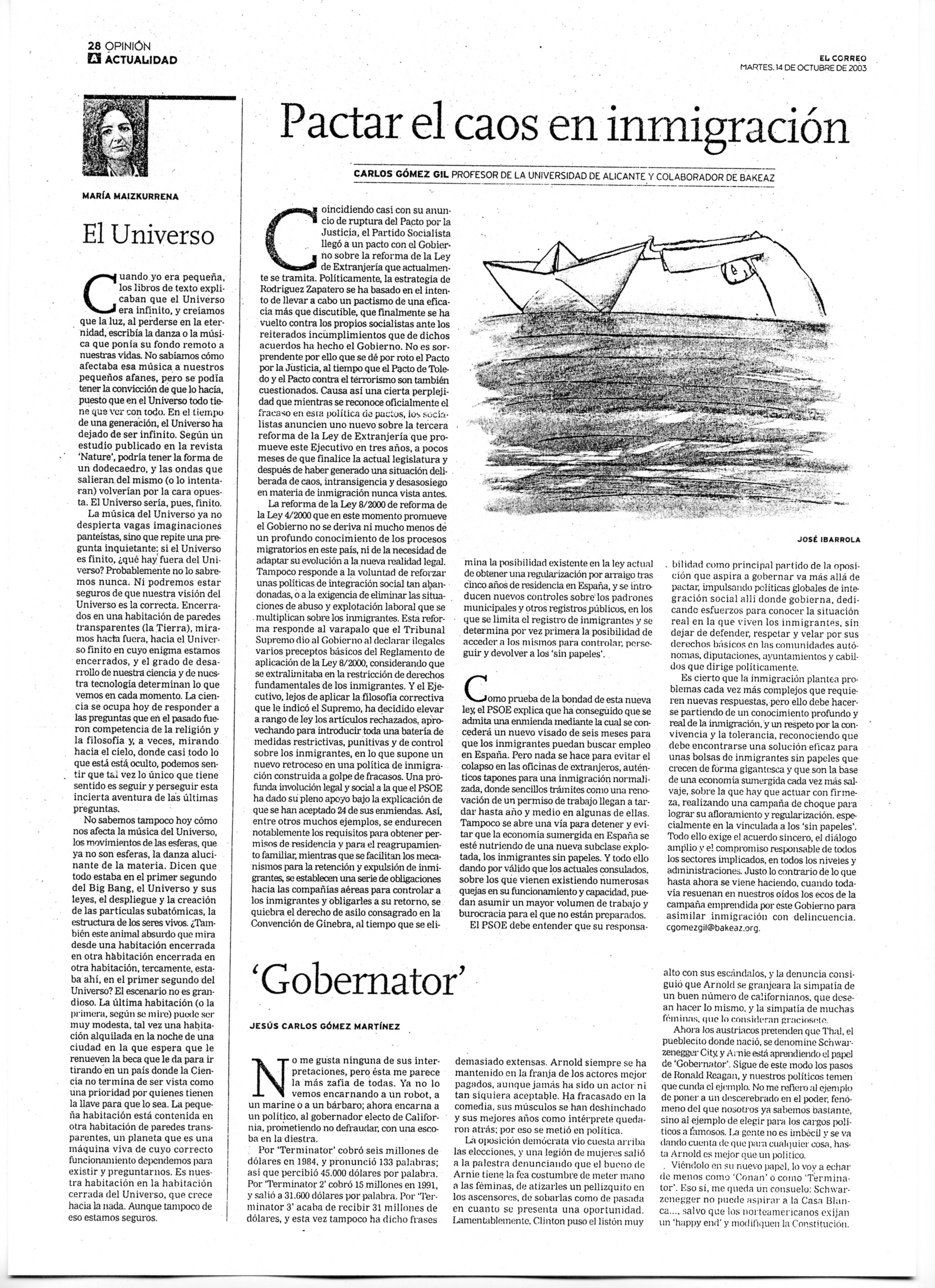 Pactar el caos en inmigración, Carlos Gómez Gil, 14/10/2003