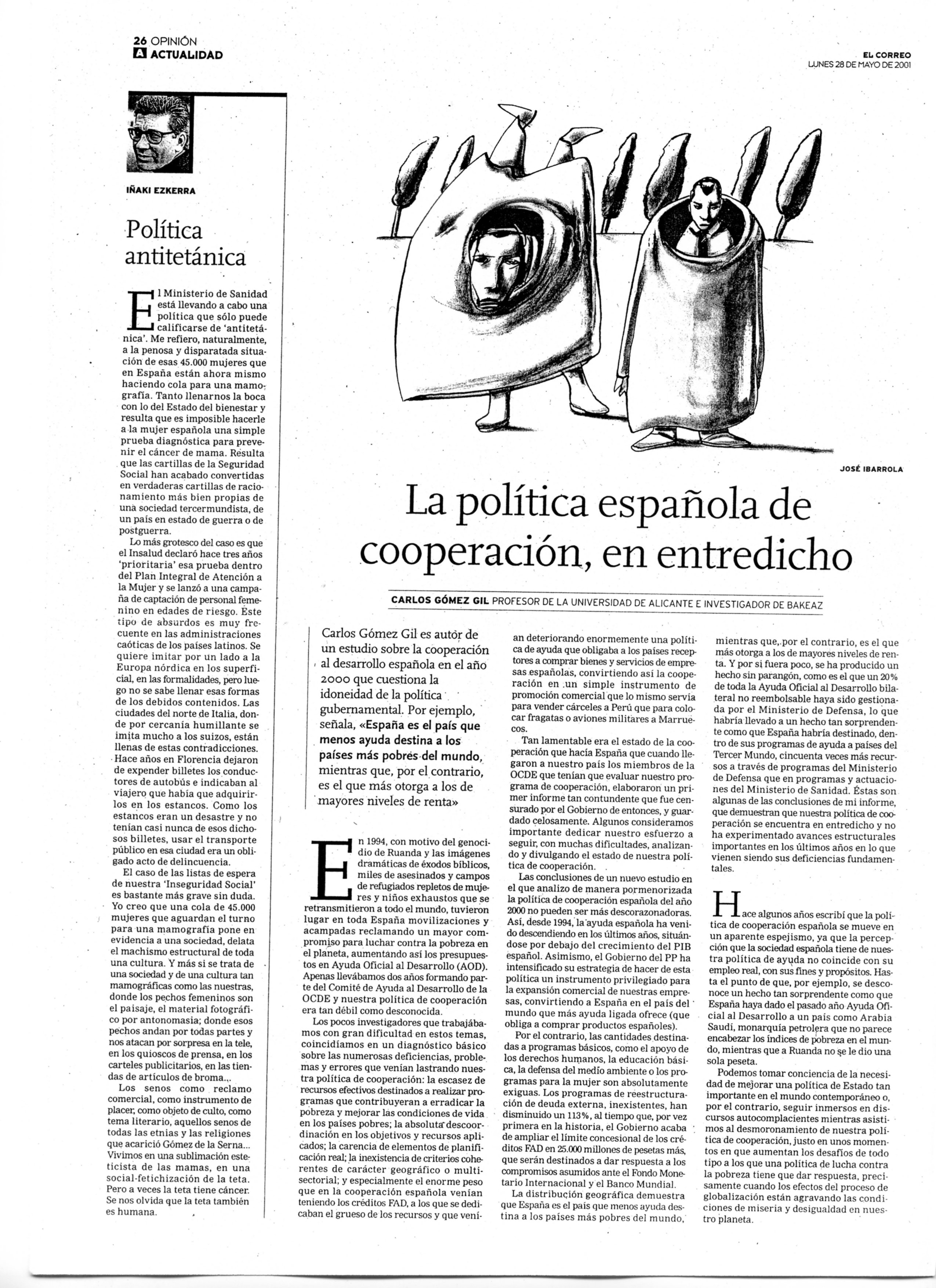 La política de cooperación en entredicho, Carlos Gómez Gil, 25/05/2001
