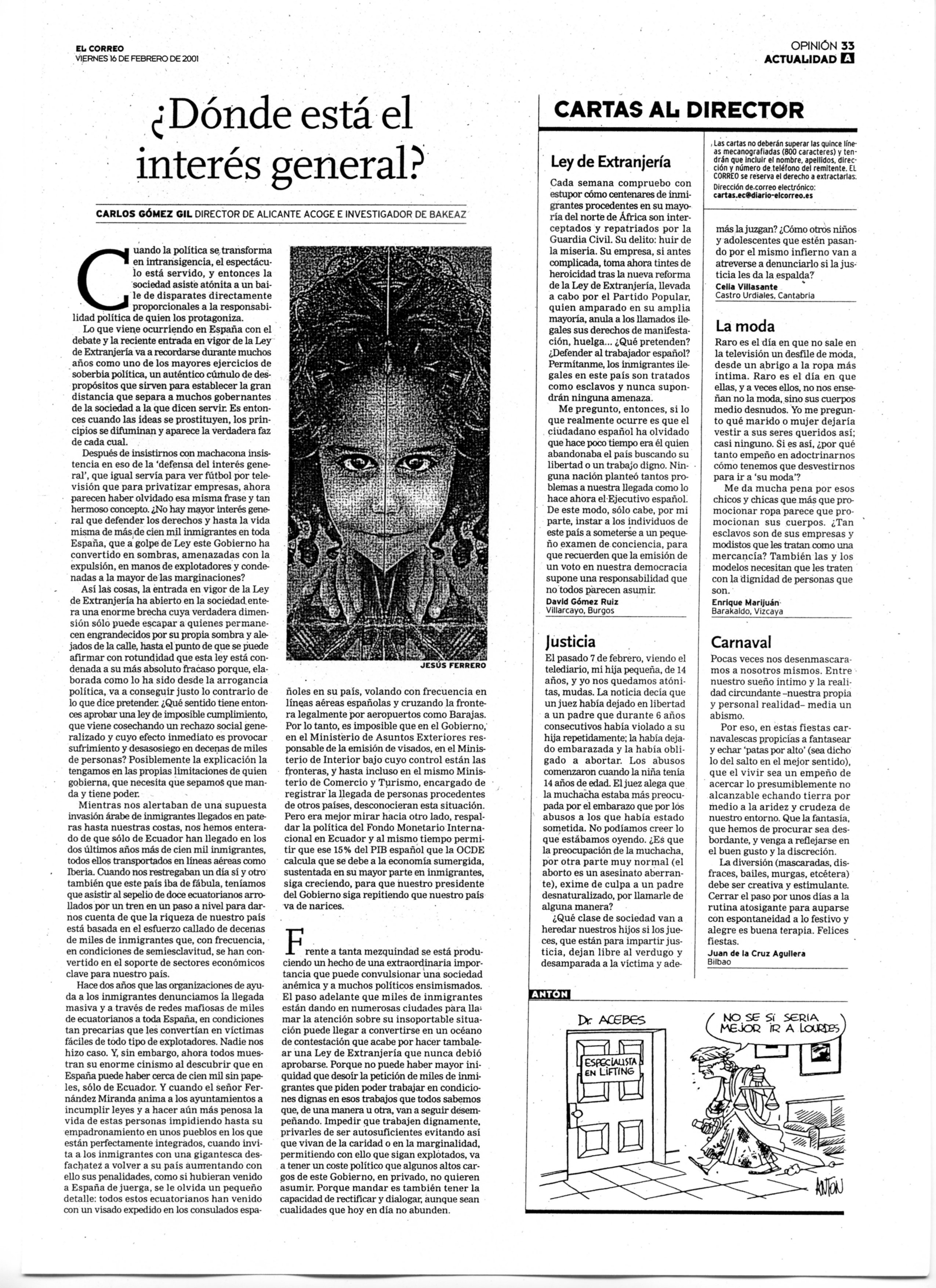 Infortunios de la Ley de Extranjería, Carlos Gómez Gil, 21/02/2000