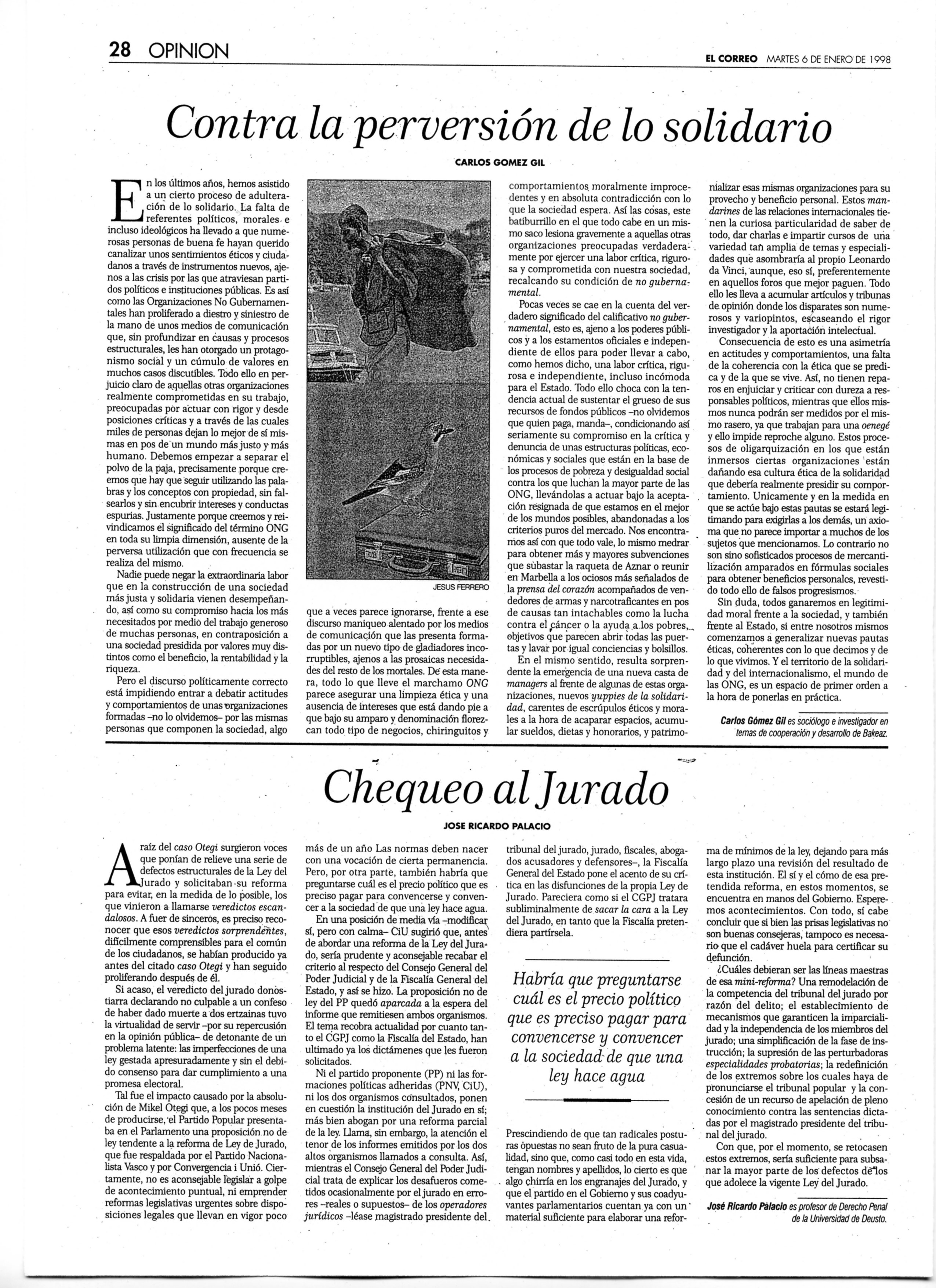 Contra la perversión de lo solidario, Carlos Gómez Gil, 06/01/1998