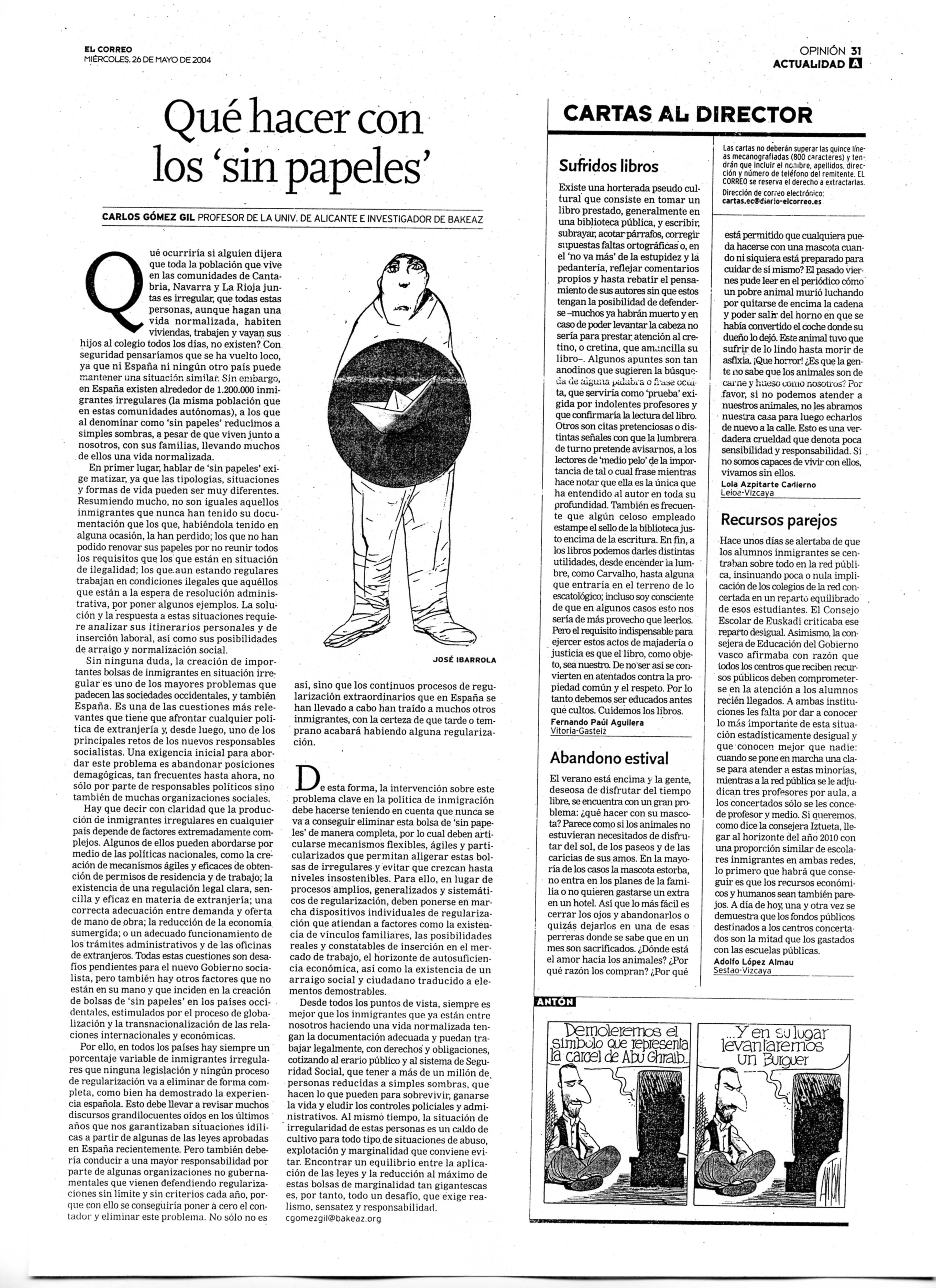 Qué hacer con los «sin papeles», Carlos Gómez Gil, 26/05/2004