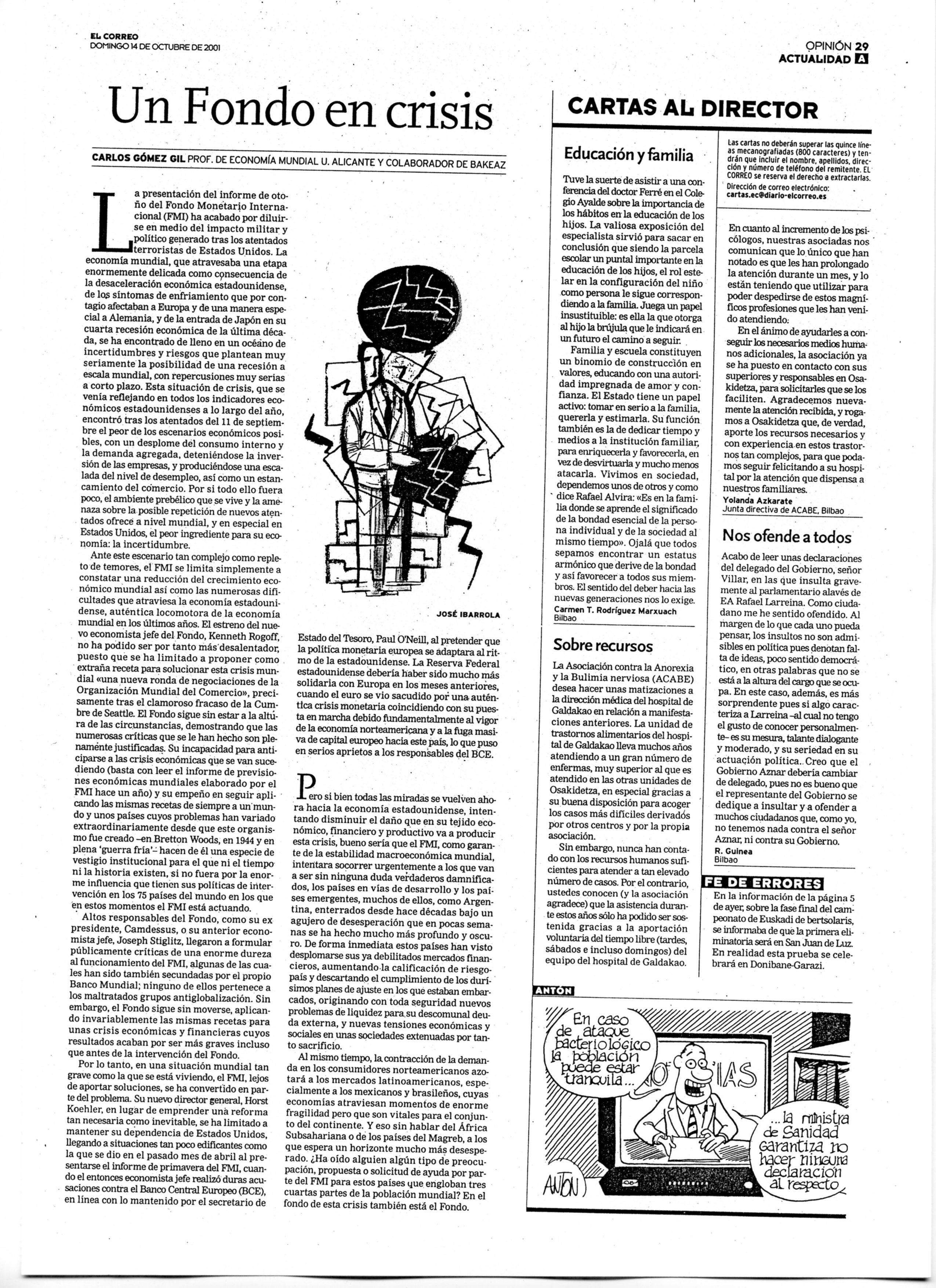 Un Fondo en crisis, Carlos Gómez Gil, 14/10/2001