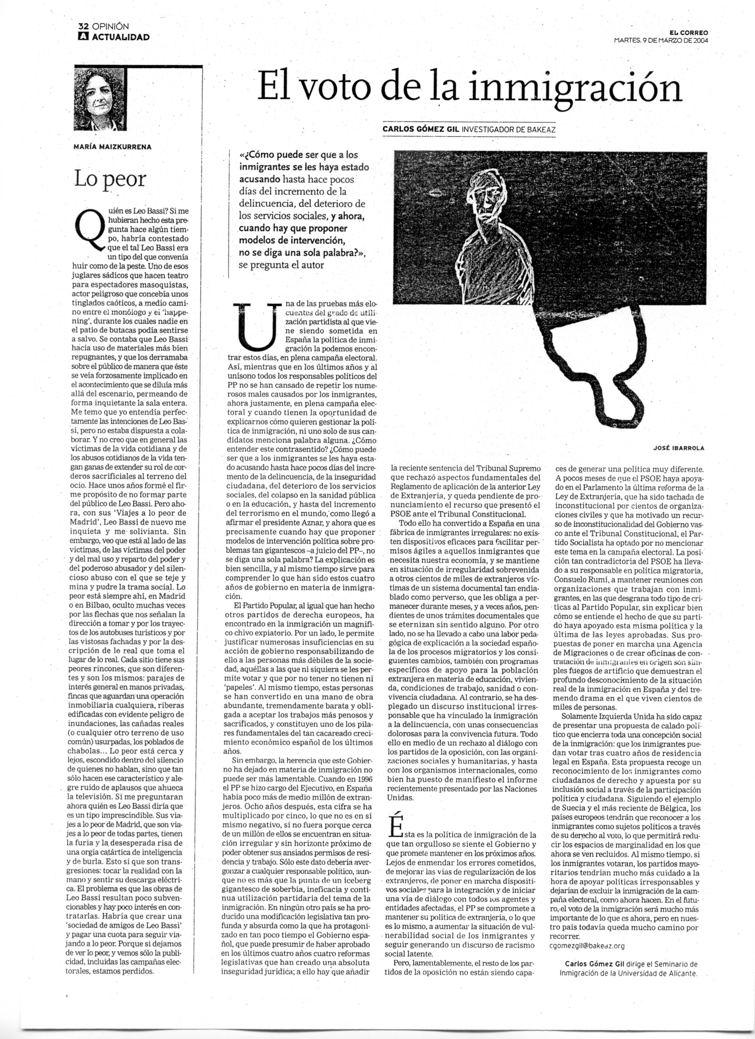 La inmigración en campaña, Carlos Gómez Gil, 07/11/2003